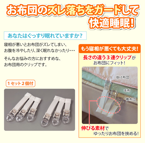 快適睡眠に、お布団ズレ落ちクリップ フィット・2個組